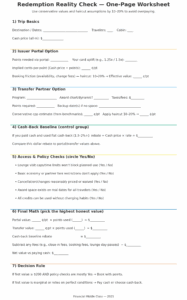 Start with an external benchmark (portal floor or reputable third-party valuations), then reduce it to reflect friction and limited seat availability. Example: If you value UR at 1.5¢ via portal on a Reserve card, treat it as 1.3–1.35¢ when planning, so you’re not surprised later.